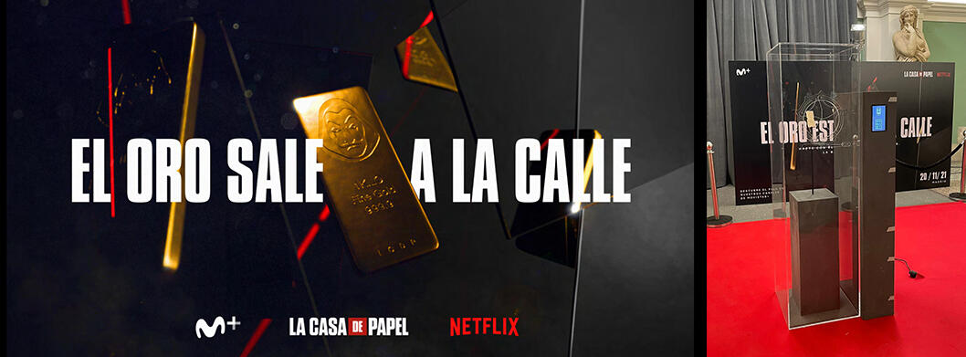 En la temporada final de La Casa de Papel, el reto era trasladar la épica del mayor robo de ficción a las calles. Cinco cajas fuertes futuristas repartidas por la ciudad contenían lingotes idénticos a los de la serie, pero solo uno era de oro real. Un código secreto, escondido en distintas pistas, desafió a los fans a descifrarlo, convirtiéndolos en parte de la banda y transformando Madrid en un tablero de juego.